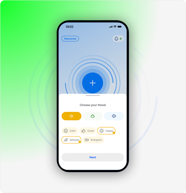 Open the app and tap the ‘Check-In’ button. You’ll be prompted to select your current mood and can optionally add notes or details about your day.